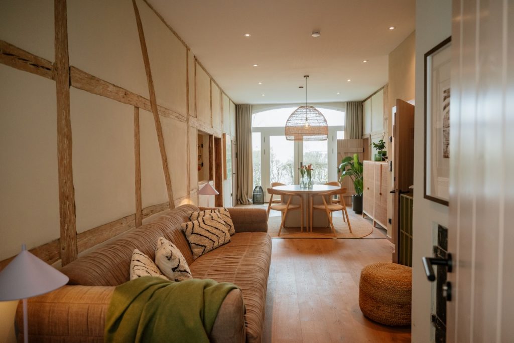 Erlebe bewusste Erholung in der Ferienwohnung II im THE BETTERHEIM, gelegen im Erdgeschoss unseres liebevoll restaurierten Backsteinhauses mit Reetdach. Mit Platz für bis zu 4 Personen ist sie ideal für Familien, Freund:innen oder Paare, die einen nachhaltigen Urlaub inmitten unberührter Natur verbringen möchten.