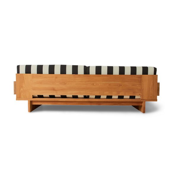 The outdoor benches and daybeds are designed to integrate effortlessly into a natural landscape or urban setting. Intended to be used over a longer period of time and become more beautiful over the years. Its clean teak wooden frame embraces the comfy sofa cushions, creating a lovely lounge spot.